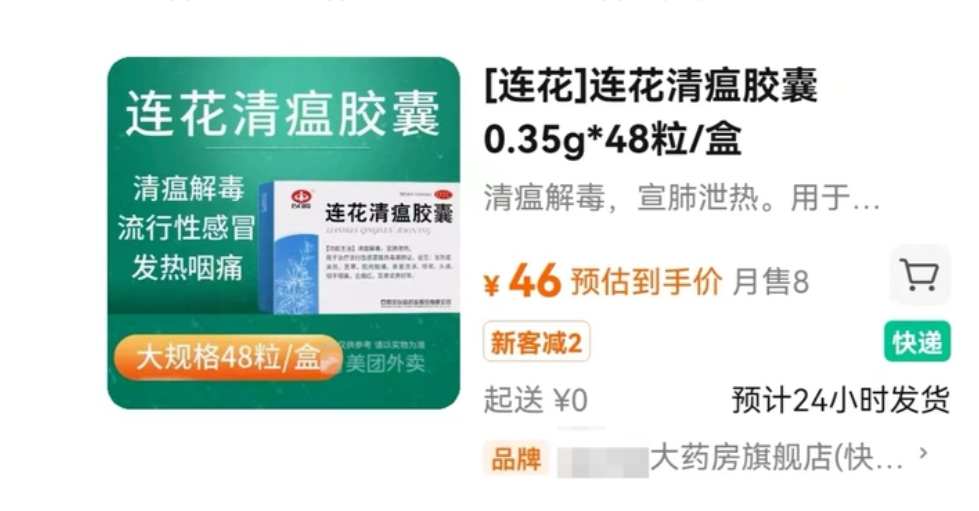 红星资本局注意到,有位于广东省河源市的药店,目前0.35g*48粒/盒规格的连花清瘟胶囊售价46元/盒。若以以往约30元/盒的普遍售价计算,已提价超50%。