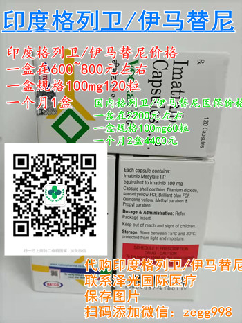 (新版)印度格列卫价格(100gx120粒)折合人民币多少钱(元)一盒? 2023年国内(印度)格列卫(伊马替尼)上市医保价格曝光。印度格列卫/伊马替尼一盒的价格在600-900元左右一盒。联系泽光国际医疗【微信:zegg998】直接添加,印度直邮,品质保障!