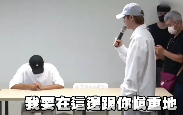 耀乐今天12点出面召开记者会,表示和炎亚纶2017年认识的,才刚说完「那年的我才16岁…」结果炎亚纶突然现身,他整个人低头不敢面对。炎亚纶深深一鞠躬后说,「我是要跟他道歉,所以我还是对着他比较好,我要在这边慎重的再跟你说一声对不起,让你承受不该承受的事情,真的很抱歉」,接着又再深深一鞠躬。