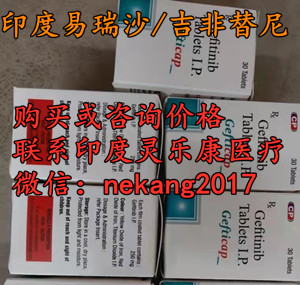 吉非替尼片多少钱一盒,易瑞沙多少钱一盒,易瑞沙价格,易瑞沙价格多少钱,易瑞沙医保。易瑞沙作为一代肺癌靶向药,对于非小细胞肺癌的患者治疗效果是比较显著的,易瑞沙对EGFR黄金突变19号和21号L858R常见突变效果尤其好,对亚洲不吸烟女性肺腺癌患者效果也更为友好。那肺癌靶向药“鼻祖”易瑞沙多少钱一盒呢?易瑞沙价格在上市之初是比较贵的,但是在2018年易瑞沙纳入到国家医保,2023医保后的易瑞沙价格现如今多少钱?印度灵乐康【微信nekang2017】介绍医保后,易瑞沙价格大降价,一盒250mg,10粒易瑞沙价格1000多元,吃易瑞沙一个月价格在3000元左右。但是目前市面上除了易瑞沙原研药外,还有同疗效但是价格便宜的印度易瑞沙吉非替尼。印度易瑞沙吉非替尼多少钱一盒呢?印度易瑞沙一盒是30片,印度吉非替尼价格不到700元,而且是一个月用量,印度易瑞沙在国内是绝大多数肺癌患者选择的版本,印度易瑞沙也被称为是“上帝送给亚洲人的礼物”。