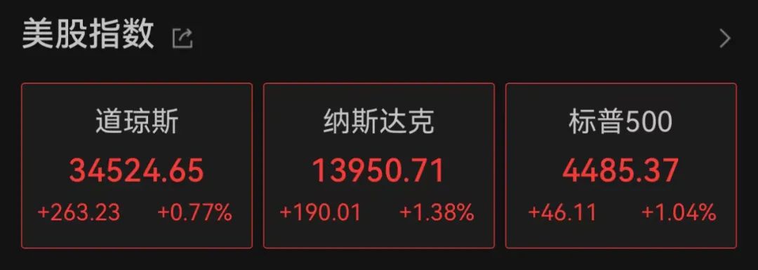 美股集体大幅高开,道指开盘便涨超130点,随后涨幅迅速扩大。标普500指数、纳指和罗素小盘股盘初均涨超1%,标普大盘创去年4月来最高,纳指开盘便涨超1%。