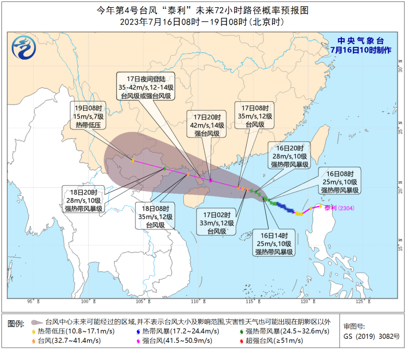 2023年7月16日,中央气象台发布台风黄色预警:“泰利”来袭