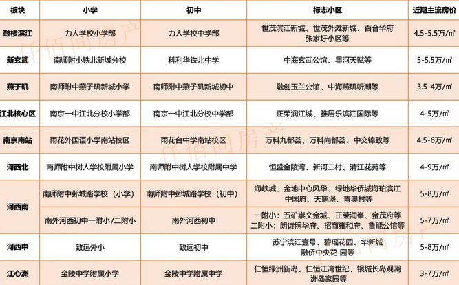 6.河西北 南师附中树人学校附属小学/雨花台中学南站校区 恒盛金陵湾、新河二村、清江花苑等4-9万/m