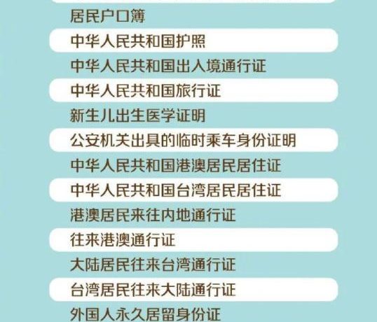 公安机关出具的临时乘车身份证明中华人民共和国港澳居民居住证中华人民共和国台湾居民居住证港澳居民来往内地通行证往来港澳通行证