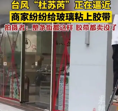“杜苏芮”今天9时55分在福建晋江沿海登陆,登陆时中心附近最大风力15级(50米/秒,强台风级)。面对台风的威胁,市民们的反应是理智而忧虑的。他们通过购买胶带,加固门窗,以此来防止可能的损害,这种现象在整个城市中普遍存在,导致胶带在许多商店中脱销。