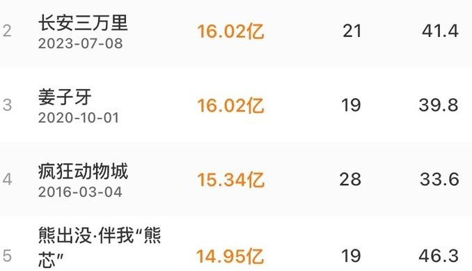 动画电影《长安三万里》票房破16亿 作者: xiaomidaifa 发布: 2023年8月4日 20:09:08 146阅读 近日上映的动画影片《长安三万里》票房超16.02亿,超过影片《姜子牙》,位列中国影史动画电影票房TOP2。 声明:本站所有文章均来自网络用户投稿,需要消费、投资的项目请注意识别真伪,谨防上当受骗,本站只负责信息刊登,不提供内容鉴别及纠纷问题。投稿内容若侵犯了您的权益请及时联系客服删除。