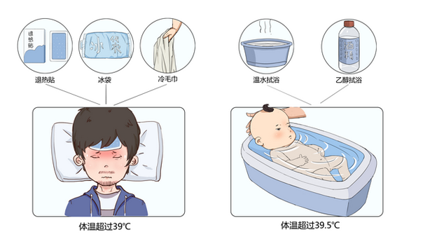 第三点,温水擦身。水的温度控制在30度左右,用温水擦拭全身各个地方,尤其是颈部、腋下、足部、腹股沟等等地方,每次操作时间在10分钟以上。