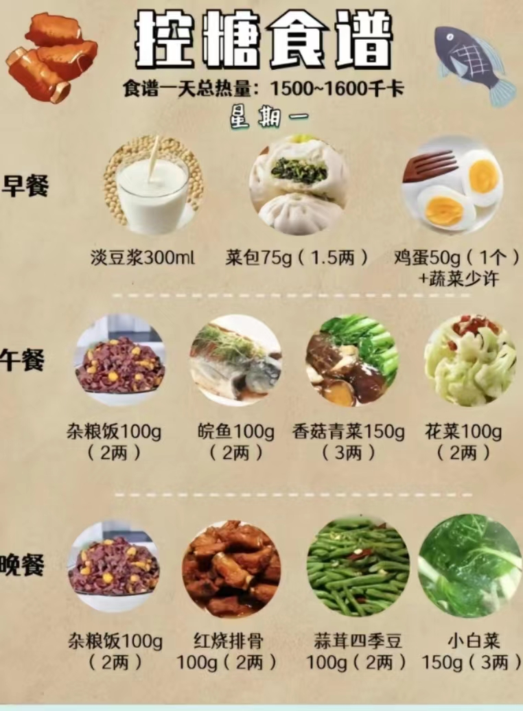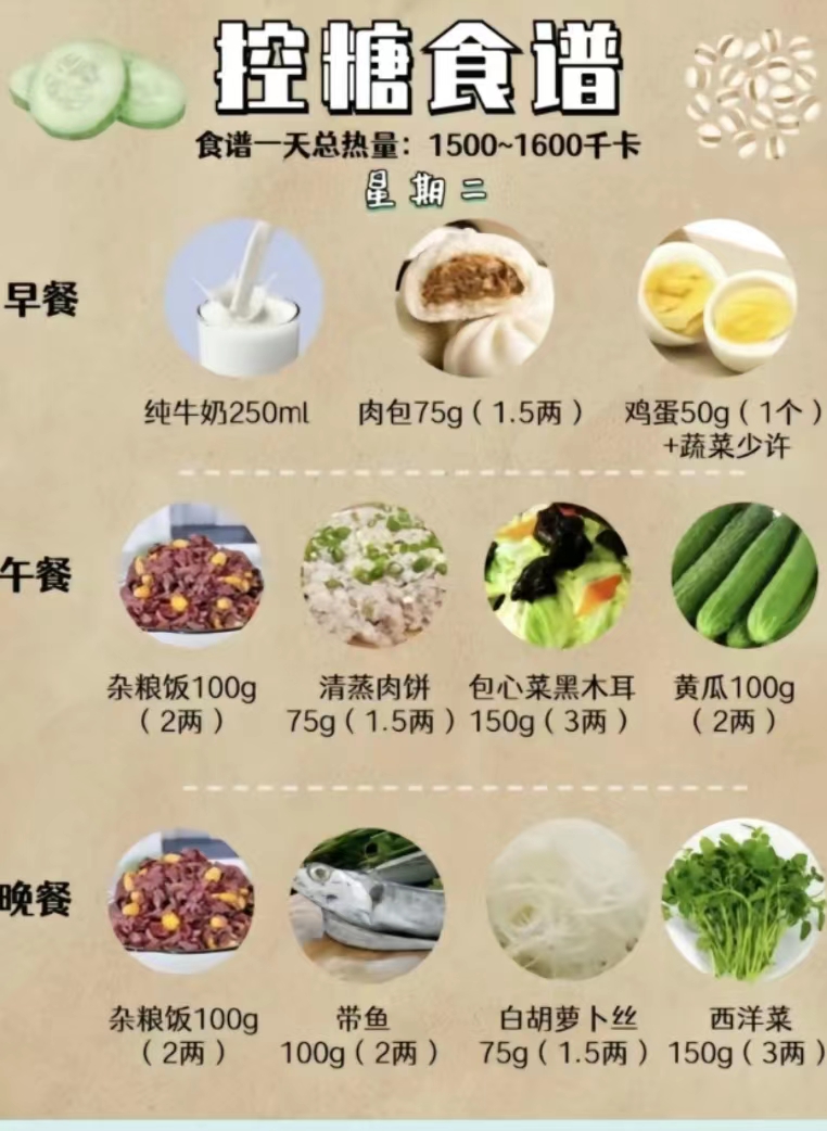 饮食控制就是管住你的嘴、含糖的水果、含糖的水果,点心的什么都不吃面食少吃。吃面食可以,不吃碳水化合物也不行。粗细搭配,粗粮多吃粗粮多吃粗粮搭配一点白的不吃多,多吃蔬菜、豆制品、牛奶、鸡蛋都可以。