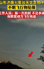 9月1日凌晨,济南七星台天文台上空出现不明物体,坠落到天文台东南方向的山里。监控视频显示:该物体向上升空一定距离后,又在空中拐弯,最后和地面形成一定的夹角角度后急速坠落地面。视频中该物体坠落时,除了夜间虫鸣之外,并无其他声音被监控相机录入。济南七星台天文台回应称排除鸟、飞蛾、无人机、飞机、流星陨石等