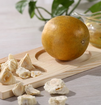 第二配陈皮。罗汉果利咽开音,性质偏凉,陈皮理气化痰,性质偏温。二者搭配起来以后性质就会更加温和,更加适合日常饮用。