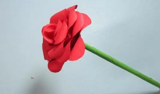 16、再将3、4、5、6花瓣分别穿到花枝顶部,粘好,稍微调整下。这样,美丽的玫瑰花就折好了。
