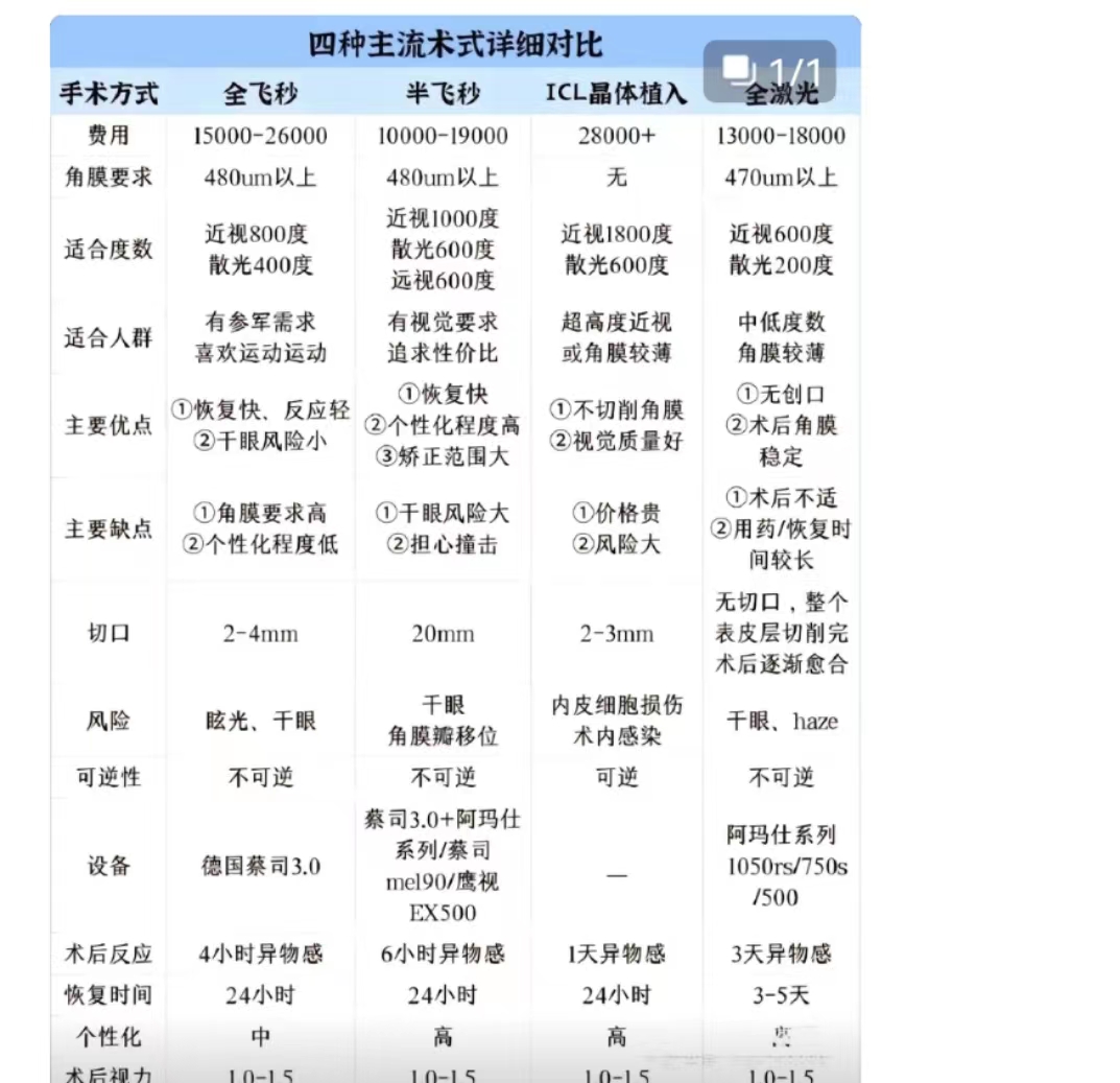 四种主流近视眼手术价格详细对比2023年一览表: