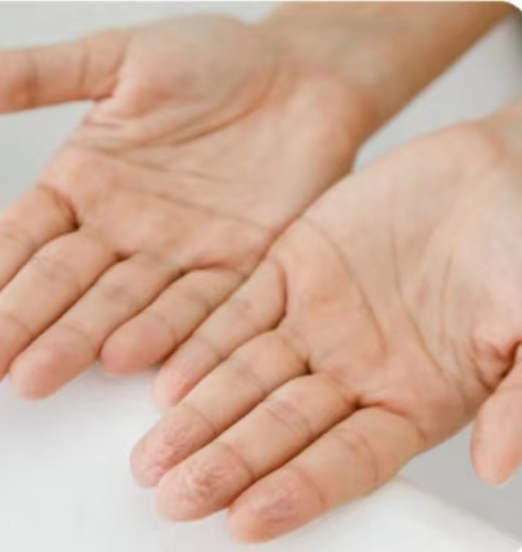第三、肝胆湿热。这类人不只是手心出汗,腋下大腿根也会经常出汗,并且平时脾气不好,舌红苔黄,这就需要去清泻肝火,同时辅助滋补心肝。第四、心气虚。这类患者大多有心慌心悸,胆小失眠多梦的情况,治疗时需要去补益心气。第五、肺气虚。这类人除了手心出汗,大多还会有后背,胸口,鼻子尖也容易出汗的情况,而且走两步就会气喘,非常怕冷,容易感冒。那这种情况就需要益气固表,滋养肺阴和肾阴了。