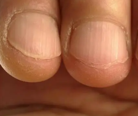 在指甲上微微隆起的竖纹叫甲纵脊,它是一种比较常见的指甲的异常现象。如果甲纵脊数量不多,不用理会它。持续时间长。而且多个指甲有多条甲纵脊就要谨慎了。一般多见的可能是手部的慢性湿疹,扁平太藓,白癜风,斑秃。当然甲纵脊也可以见于老年人或者有慢性肝肾疾病,甲状腺疾病或者营养不良的人群上。