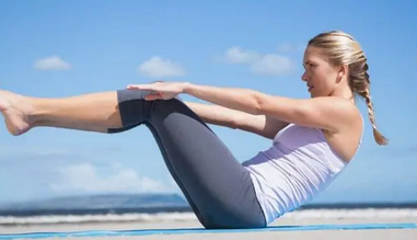 第一个动作:盘腿坐在地面上,手肘撑住地面,然后慢慢的向下压,尽量摸到最远处,坚持30秒,做2-4组左右。