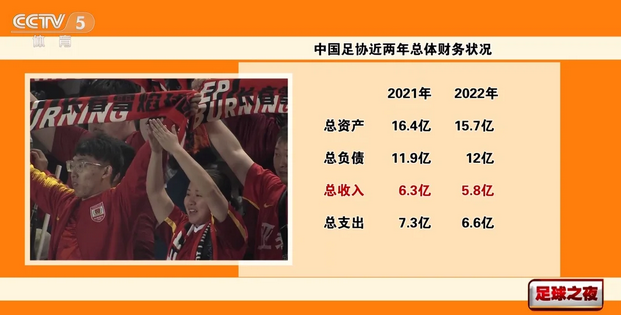 北京时间10月22日,《足球之夜》最新一期节目报道了足协10月16日足代会内容,中国足协在会上公布了2021、2022年财务报告。
