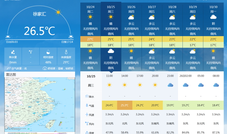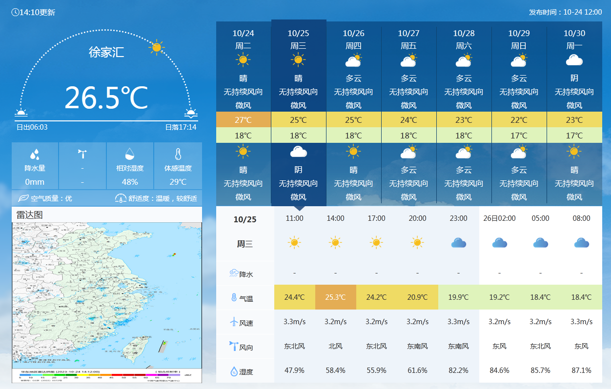2024年10月24日上海天气温度,10月25日上海天气预报