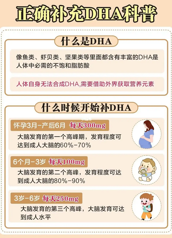 不是,DHA是贯穿人一生所需要的必需脂肪酸,不光婴儿期需要,怀孕时也需要,孕妇和婴幼儿是重点补充对象。所以从怀孕开始,摄入足量的DHA很有必要,并不是所谓的智商税。如何获得DHA?①深海鱼类(金枪鱼、带鱼、沙丁鱼等),藻类(海带、裙带菜等),②坚果类食物(核桃、杏仁、花生、芝麻等)