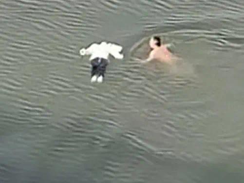 岸边一位大哥,不顾河水冰冷刺骨,脱掉上衣就跳入河中,游到河中心将女子带回岸边,有目击者表示:我在岸上听到有人呼喊,然后那个大哥就游过去救她了。