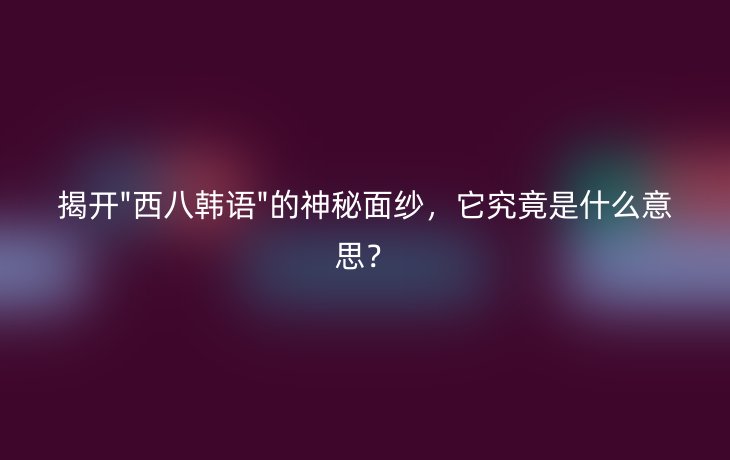 导语:在网络上,我们经常会看到一些奇怪的词汇,比如“西八韩语”。那么,这个词到底是什么意思呢?本文将为您揭开它的神秘面纱。
