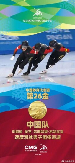 让我们再次祝贺中国队夺得亚冬会速度滑冰男子团体追逐金牌!