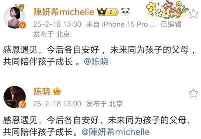 对于离婚原因,双方并未过多透露,仅表示是和平分手,未来将共同抚养孩子。声明中“感恩过去所有,今后各自安好”的表述,也体现了两人对这段感情的释然和祝福。