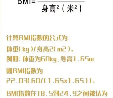 BMI的计算公式为:体重(公斤)除以身高(米)的平方。例如,一个人的体重为60公斤,身高为1.65米,那么他的BMI为60 ÷ (1.65 × 1.65) ≈ 22.03。根据世界卫生组织(WHO)的标准,BMI在18.5至24.9之间属于正常范围,低于18.5为体重过轻,25至29.9为超重,30及以上为肥胖。