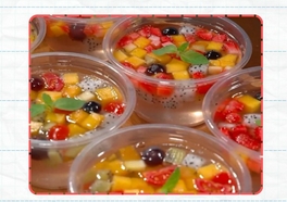 - 调味:将凝固的白凉粉切块,加入糖水、水果和坚果即可。