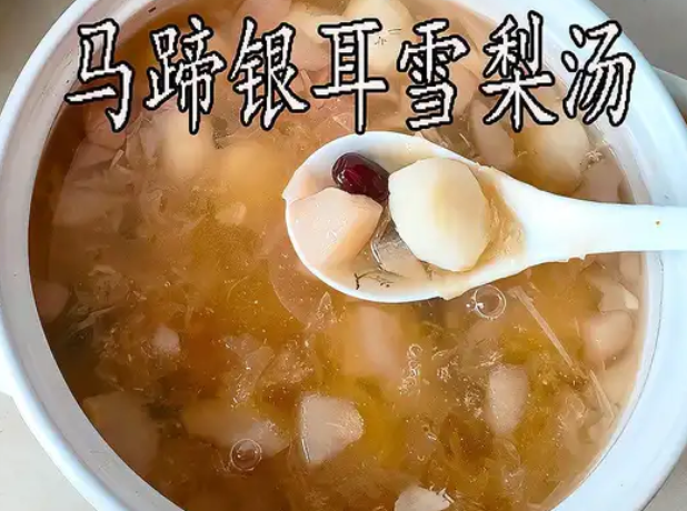 - 马蹄雪梨汤:加入雪梨和冰糖,具有润肺止咳的功效,适合秋冬干燥季节饮用。