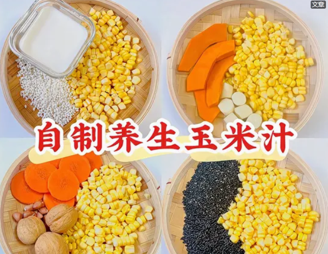 - 黄金配比:玉米粒与饮用水按3:1比例放入破壁机,加入100毫升牛奶增香,糖量可根据个人口味调整。