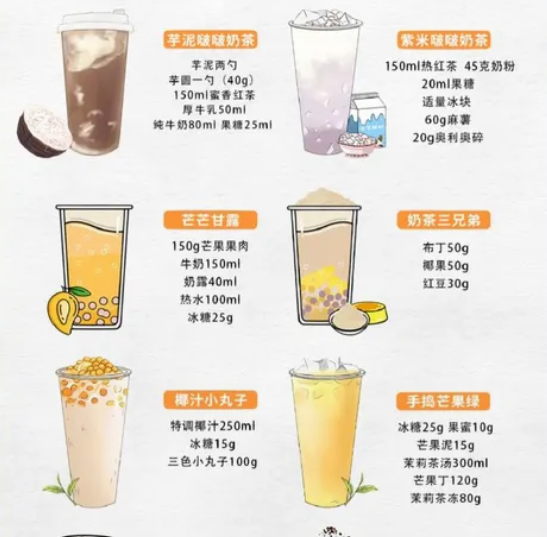 - 黑糖珍珠:淀粉制成的小颗粒状物,Q弹有嚼劲,吸附奶茶后甜度翻倍。