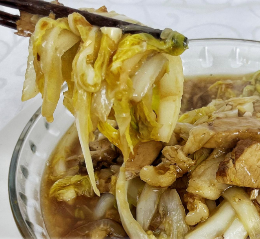 ✓ 油浸舞茸菌:用卤油煸炒至边缘焦脆
