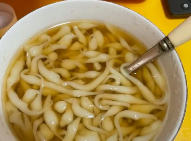 除了这种传统做法,现在还有更简便的方法。比如准备 500 克大米,将大米研磨成细粉状,加入适量的清水调制成米浆,锅中加入少量清水烧开,米浆倒入锅中,再加入少许的食用碱,开小火一边煮一边用筷子搅合,大约 5 分钟左右,米浆就熬成了细腻的糊状。接着将熬好的米浆倒入带洞洞的漏勺中,下面用盆子装上凉水,轻轻抖动,就能抖出很多小蝌蚪一样的凉虾粉。