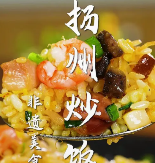 扬州炒饭的配料十分讲究。传统的扬州炒饭通常会用到金华火腿、瑶柱、鸭胗、青豆、笋、鸡脯肉、海参、香菇、鸡蛋、虾仁、香葱等食材。制作时,先将香菇、金华火腿、鸭胗、笋、鸡脯肉和海参切成细丁,葱切成末,鸡蛋打散备用。锅中倒入适量清水,水热后放入香菇、笋、海参、鸡脯肉、青豆、鸭胗和虾仁,焯水后捞出。另起一锅,锅中倒入适量油,将蛋液从高处倒入锅中炒散后捞出控油,锅中留底油,倒入金华火腿丁,炒散后倒入一部分焯过水的食材,翻炒均匀后倒入鸡蛋,炒匀后盛出备用。锅中倒入隔夜饭,炒散后倒入配料,翻炒均匀后加入白胡椒粉和盐调味,放入葱花即可将米饭盛出一半到碗中。把剩下焯过水的配料倒入锅中,和米饭炒匀后盖在刚刚盛出的米饭上,瑶柱切丝后,另起一锅,将瑶柱丝炸一下,撒在炒好的米饭上即可。如此丰富的配料,经过巧妙的搭配和烹饪,成就了扬州炒饭独特的美味。