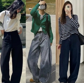 搭配方面,香蕉裤更是百搭神器。搭配修身上衣,能展现出身材曲线,显得时髦又性感;搭配宽松上衣,则营造出随性自在的氛围,充满青春活力。无论是职场女性、时尚达人还是学生,都能找到适合自己的搭配方式。