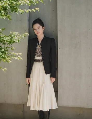 活动现场,刘诗诗身着的蓝色刺绣裙设计独特,色彩淡雅而不失高贵。裙身以蓝色为基调,点缀着精美的刺绣图案,既有传统的花鸟鱼虫,又有现代的几何元素,两者巧妙融合,既展现了传统文化的魅力,又体现了现代时尚的审美。裙摆随风轻扬,仿佛一幅流动的画卷,让人陶醉其中。