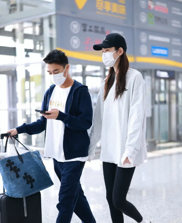 照片中,奚梦瑶身着一件简约的白色T恤搭配牛仔裤,脚踏一双白色运动鞋,整体造型清新自然,又不失时尚感。而何猷君则选择了一件蓝色衬衫搭配黑色休闲裤,同样显得随性而不失风度。两人手牵手走在机场大厅,不时相视而笑,那份默契与甜蜜让人看了心生羡慕。