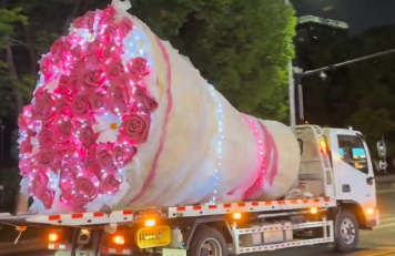 5月20日,杭州街头一辆满载巨型花束的货车成为社交媒体焦点。与去年“999朵玫瑰求婚”事件不同,此次花束以蓝白渐变绣球花为主,搭配LED灯带,夜间行驶时宛如移动的“浪漫灯塔”。