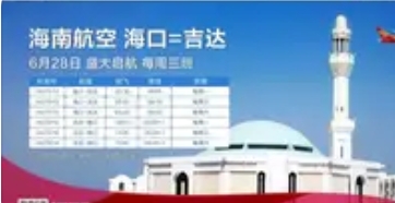 海南航空计划6月开通海口往返吉达直飞航线