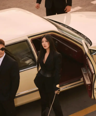照片中,赵奕欢身着一套剪裁合体的黑西装,内搭白色衬衫,简约而不失时尚感。她的妆容精致,眼神犀利,每一个动作都透露出一种不容小觑的气场。黑西装的经典搭配不仅凸显了赵奕欢的身材优势,更让她在人群中脱颖而出,成为一道亮丽的风景线。