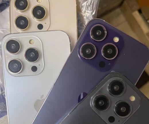iPhone 14 Pro模型的图片也是在微博上曝光,显示了近几年类似的金色、石墨色和银色的颜色选择。还会有一款全新的紫色版本和一款全新的蓝色版本。