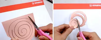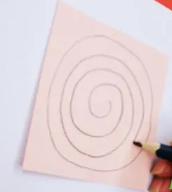 1拿一张9 * 9cm的彩色纸板,用铅笔画一个螺旋。