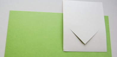 3.准备一块比折叠好的绿色纸板小的白色长方形纸板,剪出如图所示的倒三角形,粘贴在贺卡本体上。