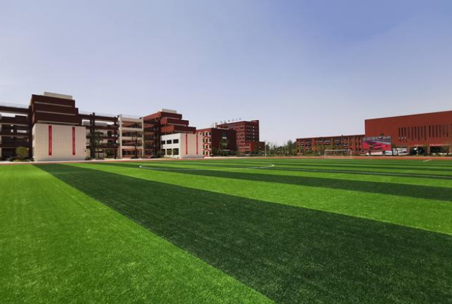 15、高大的石碑耸立在门前,通红通红的教学楼在阳光的照射下,就像一朵红色