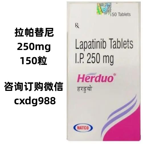 拉帕替尼(Lapatinib)由葛兰素史克公司生产。是一种口服的小分子表皮生长因子酪氨酸激酶抑制剂。主要用于联合卡培他滨治疗ErbB-2过度表达的,既往接受过包括蒽环类,紫杉醇,曲妥珠单抗(赫赛汀)治疗的晚期或转移性乳腺癌。