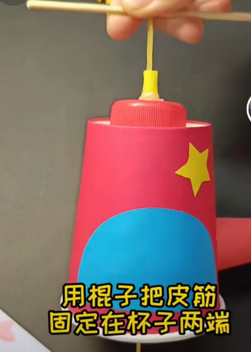 需要准备的材料:纸杯,瓶盖,吸管,硬纸壳