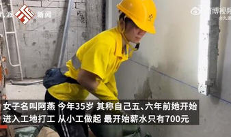 一内地女子前往香港做泥瓦工人月入十万。女子名叫阿燕,今年35岁,其称自己五、六年前开始进入工地打工,从小工做起,最开始薪水只有700元。
