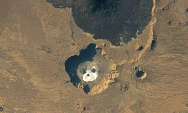NASA发布的照片显示,该“头骨”结构有两个“眼窝”和一个“鼻子”,周围环绕着一种白色物质,形成了“头骨”的外观。NASA表示,它实际上是一个深达1000米的火山坑,“眼窝和鼻子”实际上是煤渣锥围绕火山喷口建造的陡峭圆锥形山丘,而白色材料是“由一种称为natron的盐制成的矿物外壳”。